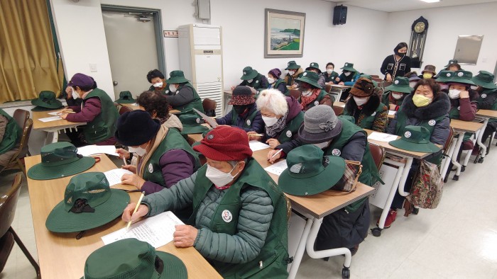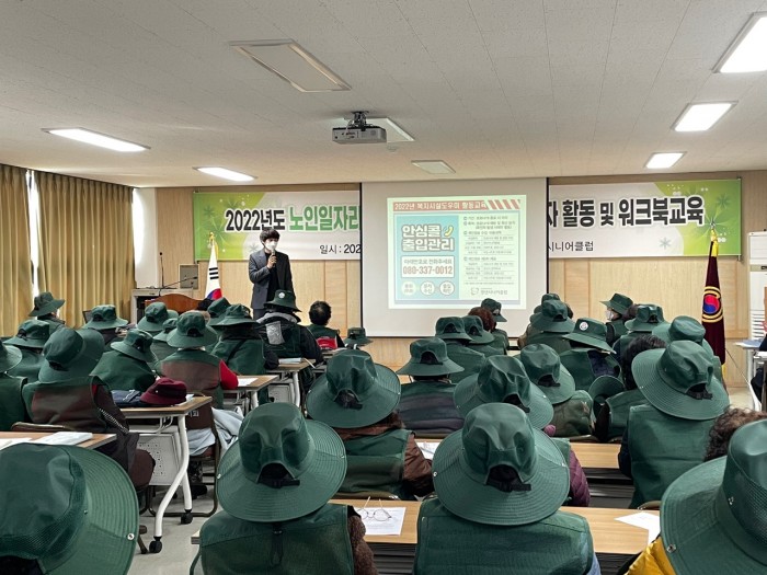 3. 내용 : 노인일자리 및 사회활동지원사업(사회서비스형) 참여자 집합교육 및 워크북 교육을 실시하였습니다. 코로나19와 관련하여 활동 교육 시 손소독, 체온 확인 등 방역 수칙을 잘 지키며 활동에 필요한 기본 교육 및 안전교육을 진행하였습니다.