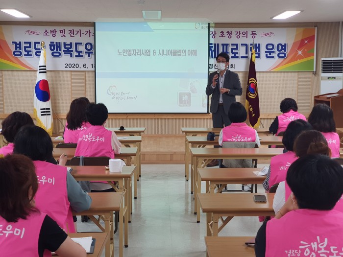 2020. 06. 25 (목요일)대한노인회 경산시지회 경로당 행복도우미 분들에게 노인일자리사업 · 시니어클럽에 대한 설명과 홍보 하는 기회를 가지게 되었습니다.