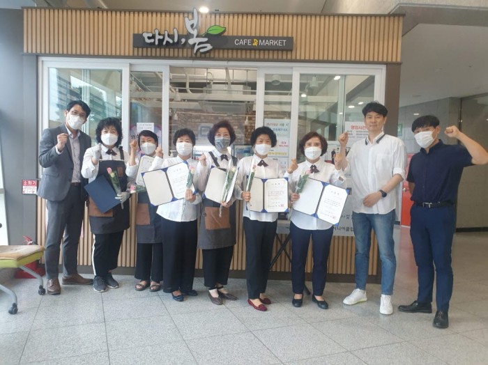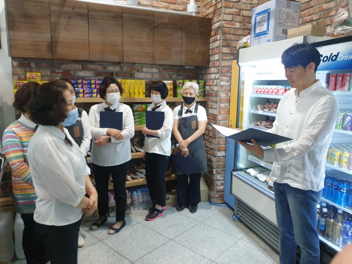 2020.06.24~25경산시니어클럽 카페 다시, 봄(cafe & market) 참여자 어르신 바리스타 양성을 위하여 커피고래와 교육 협약하여 5월25일 부터 진행된 교육을 수료하여 수료식을 진행 하였습니다.커피고래 사장님과 관장님이 참석하여 직접 수료증을 수여 하였습니다.