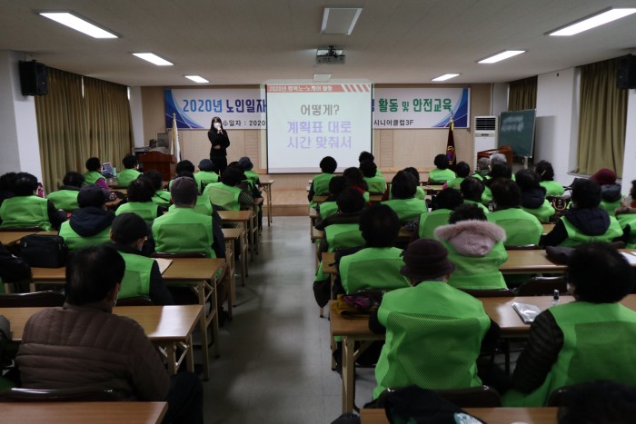내용 : 2020년도 행복노-노케어 참여자(130명)을 대상으로 활동방법, 안전수칙 등 활동에 필요한 기본교육 및 신종코로나바이러스 예방을 위한 안전교육을 실시하였다.