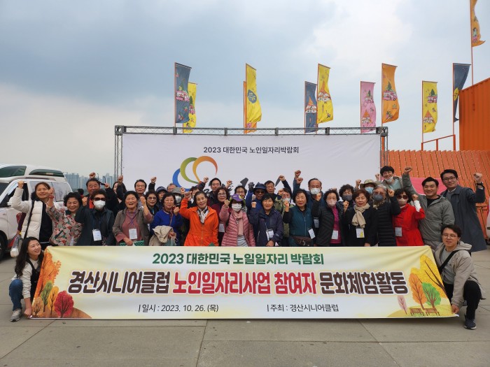 경산시니어클럽은 오늘(10.26.) 서울 여의도 한강공원 물빛무대에서 열린 2023 대한민국 노인일자리 박람회에 일자리참여자 어르신 30명을 모시고 참가했습니다