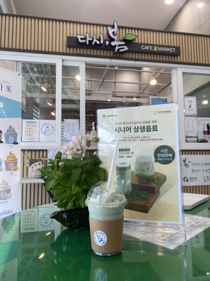 경산시니어클럽은 오는 6월 16일부터 한국시니어클럽협회·스타벅스와 협업해 ‘시니어 상생음료’를 계절 한정 메뉴로 판매합니다!