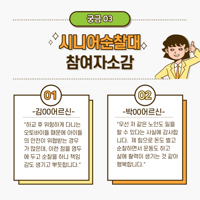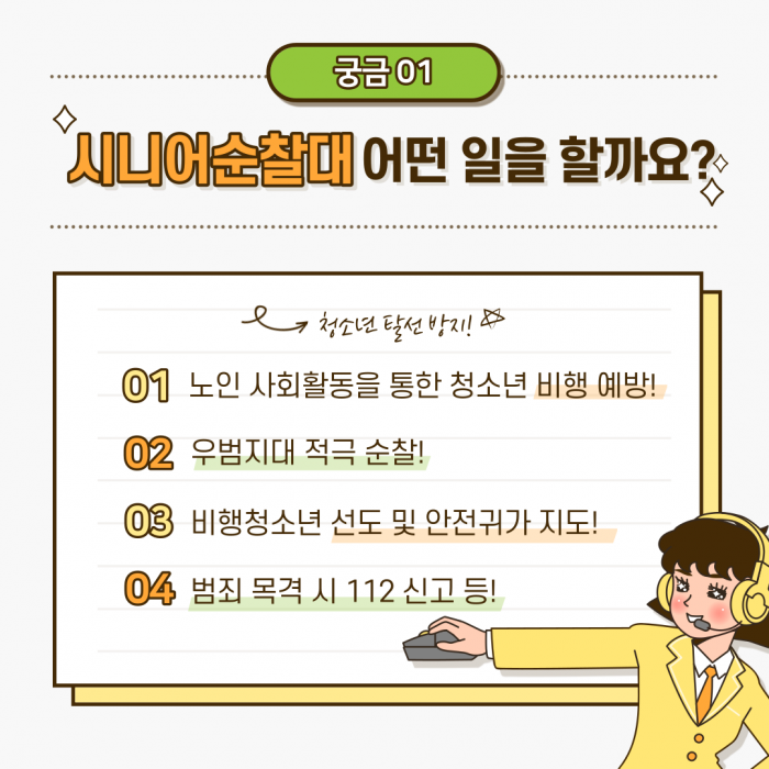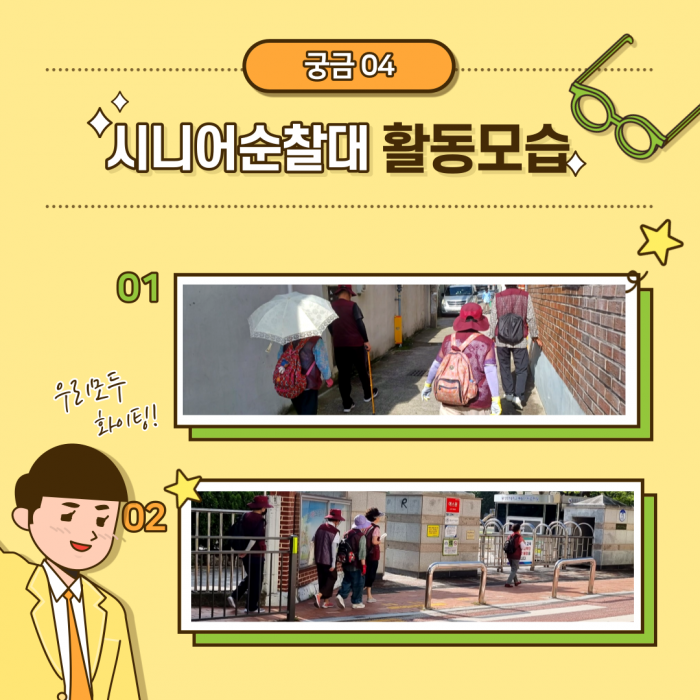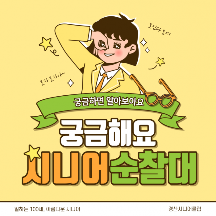 공익활동형 사업인 시니어순찰대를 소개합니다!! 지금도 여전히 활발하게 활동 중인 시니어순찰대~ 과연 어떤 일을 하는 사업단인지 함께 알아보러 출발해봅시다!!