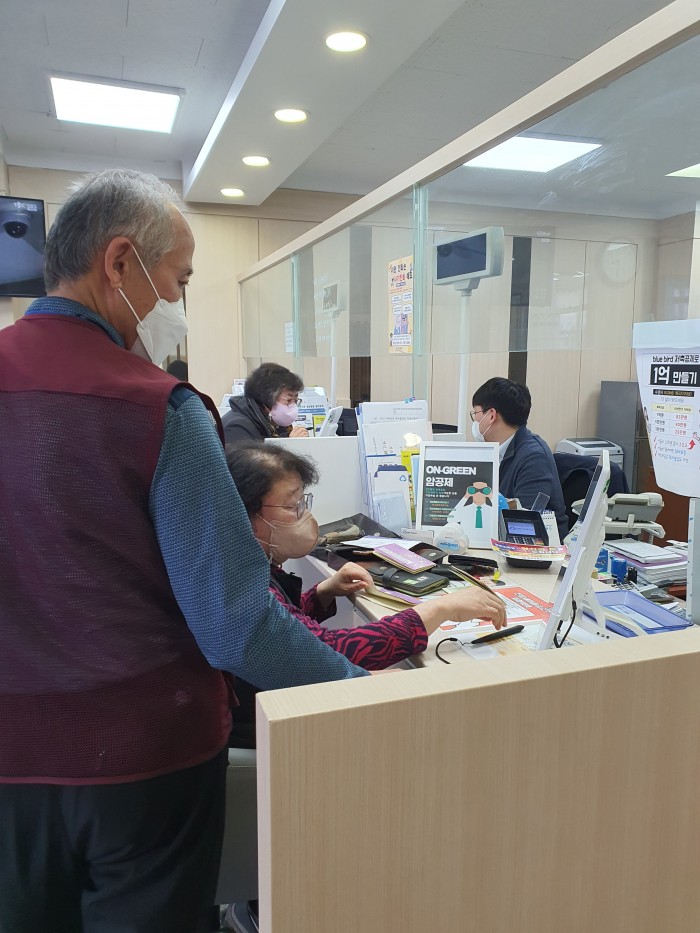 시니어금융업무지원단은 ATM기 및 공과금 기기 사용 안내, 보이스피싱 등 금융범죄를 예방하는 목적으로 운영되고 있습니다. 또한 디지털화 되어가고 있는 은행 업무 중 어려움을 겪는 고객분들을 돕는 일을 하고 있습니다.