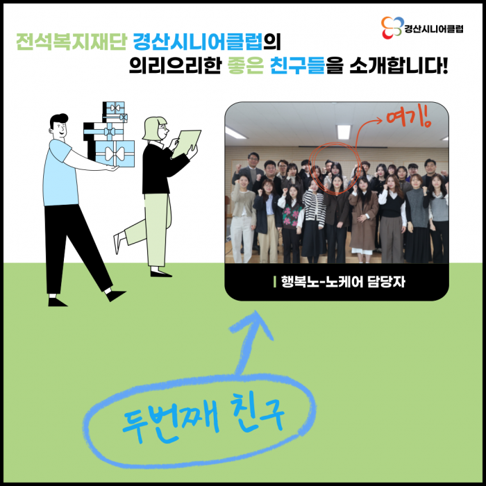 기관의 뜻깊은 좋은 친구들인 경산시니어클럽 종사자를 소개하는 게시물 그 세 번째 이야기!! 많은 관심 부탁드립니다!