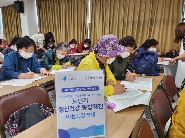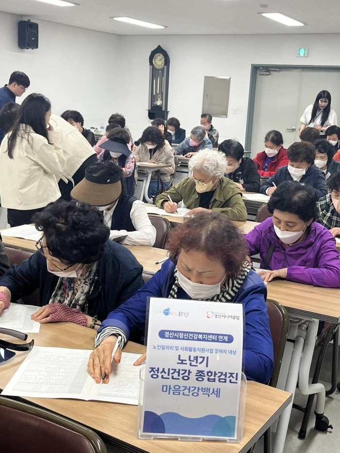 소양 직무 교육 및 정신건강 종합검진 교육을 모두 마쳤습니다!! 경산시정신건강복지센터에서 노년기 정신건강 종합검진을 통하여 우울증, 불안장애 등 여러가지 정신건강 상태를 검진을 실시 하였습니다.경산시니어클럽은 참여자 어르신들을 위해 안정적으로 근무할 수 있는 여건을 만들어 더욱 건강한 사업을 운영할 수 있도록 지속적으로 노력하겠습니다!
