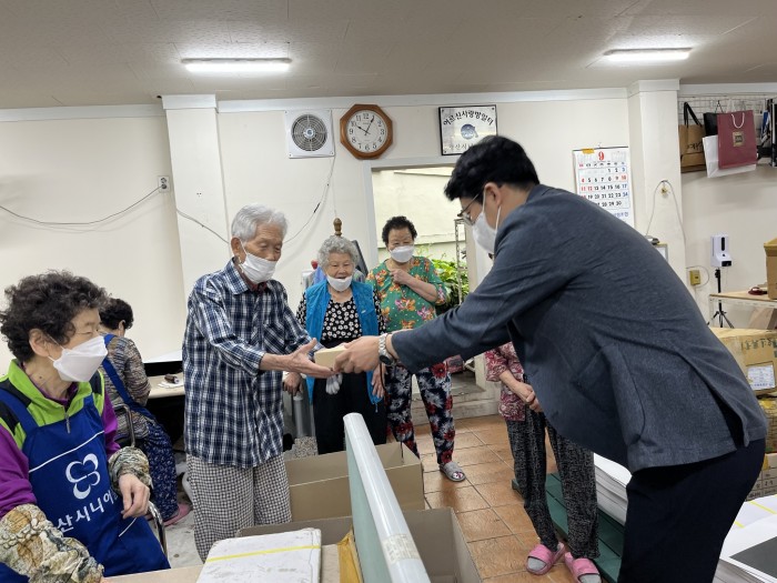 경산시니어클럽(관장 정진석)은 추석을 맞이하여 시장형 사업단 참여자를 대상으로 추석을 풍요롭게 보내실 수 있도록 선물을 전달해 드렸습니다.