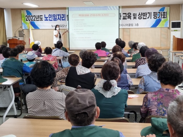 정진석 관장님의 인사말씀을 시작으로 100세 건강 교육 및 치매예방교육, 참여자 교육, 상반기 평가회 순으로 진행이 되었습니다.
