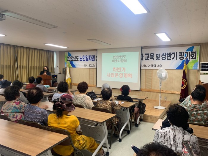 2022년도 노인일자리 공익활동형 사업(이웃사랑 사업단)의 교육 및 상반기 평가회를 7월 25일(월) 실시하였습니다.