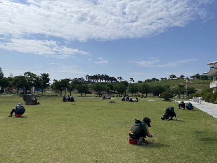 그래서 어르신들이 열정한 가득한 모습으로 풀을 뽑으시며 환경정화를 하고 계십니다