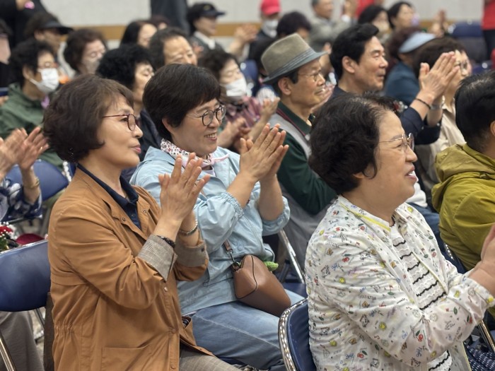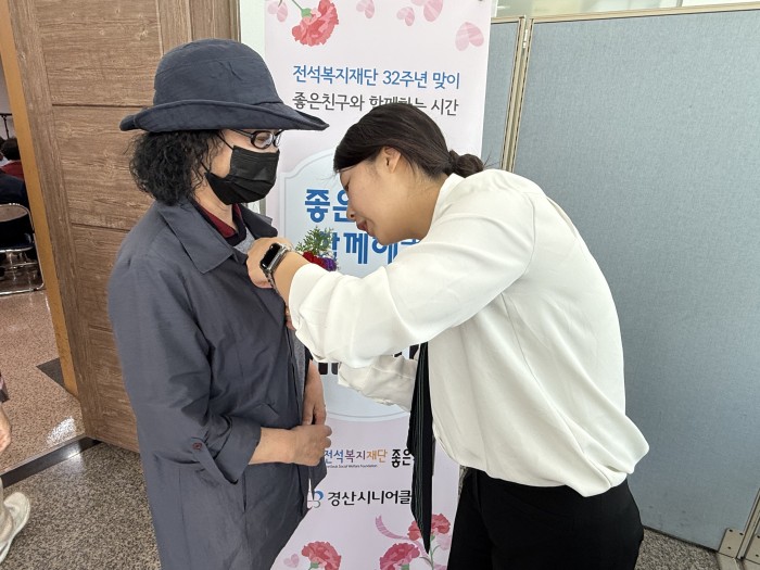 행사는 기관장님의 따뜻한 환영 인사로 시작되어, 이어서 경산시장님의 축하 말씀이 전해졌습니다. 이후 대표 어르신 9분께 시장님과 관장님이 직접 카네이션을 달아드리며 감사의 마음을 전했고, 기념사진 촬영을 통해 소중한 순간을 함께 남겼습니다. 또한, 시장님의 노래 공연 2곡이 이어지며 분위기는 한층 더 흥겹고 따뜻해졌습니다.
