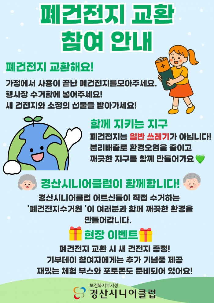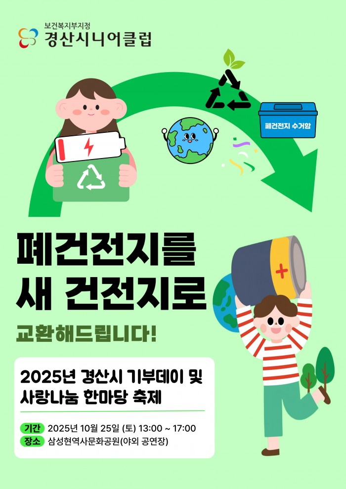 #경산시니어클럽 #경산시 #기부데이 #사랑나눔한마당 #ESG #새활용방앗간 #폐건전지수거원 #노인일자리 #경산시 #전석복지재단 #좋은친구전석