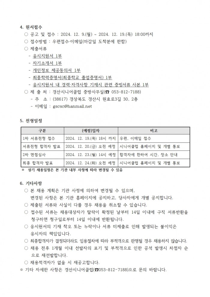 - 이전글[긴급]2025년 노인일자리 및 사회활동지원사업 담당자 채용 서류 전형 합격자 팔표 24.12.20