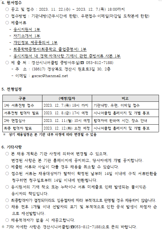 - 이전글2024년 경산시니어클럽 사업 담당자 서류전형 합격자 발표 23.12.08