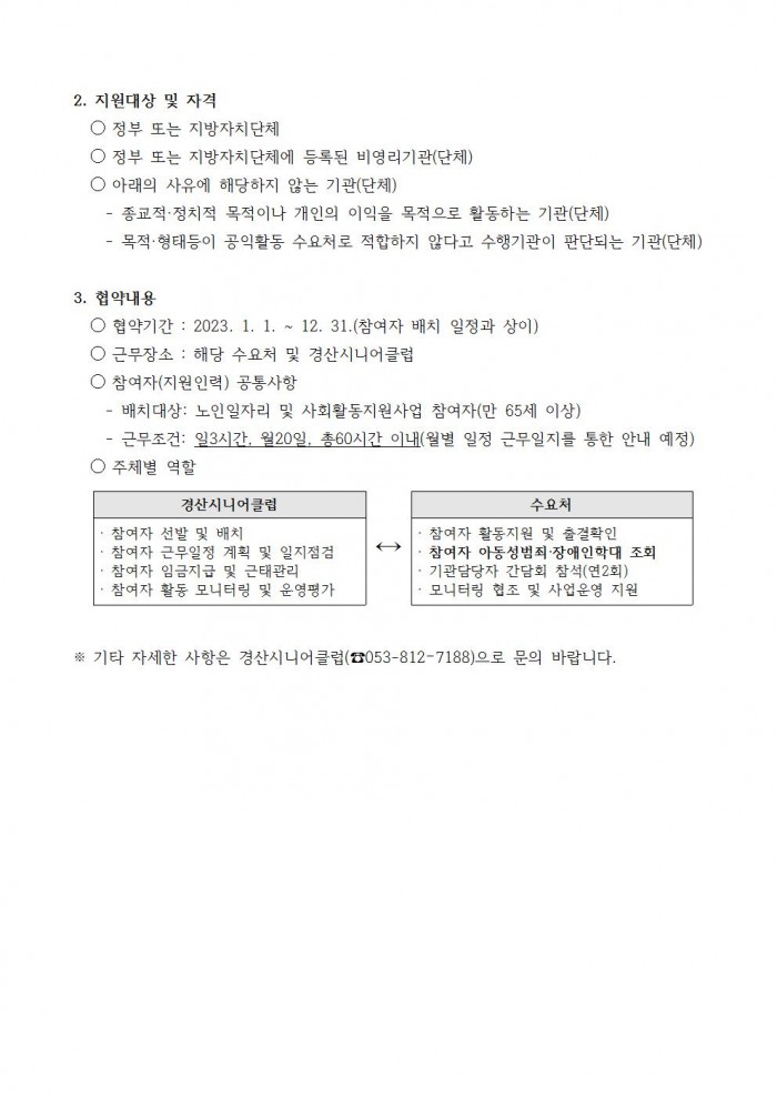 2023년 경산시니어클럽 사회서비스형 수요처 모집 공고