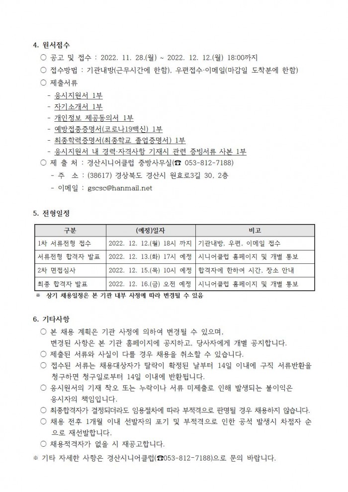 - 다음글2023년 경산시니어클럽 사회서비스형 수요처 모집 결과 공고 22.11.15