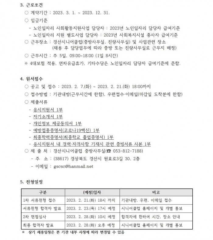 - 이전글2023년 경산시니어클럽 사업 담당자 서류전형 합격자 발표 23.02.22