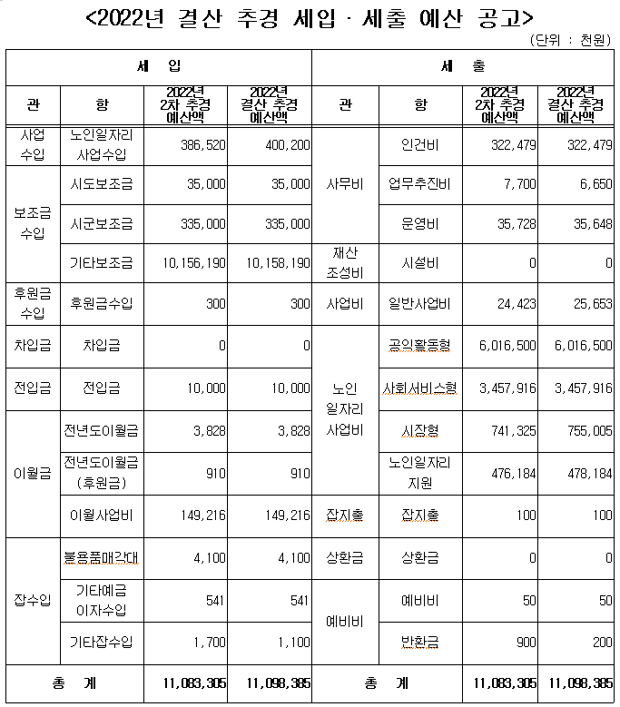 2022년 결산추경 예산 공고 페이지 정보 작성자관리자 댓글0건 조회978회 작성일22.12.22 15:08 본문 2022년 결산 추경 공고입니다. 이전글2022년도 결산보고서, 후원금수입 및 사용결과보고서 공고 23.03.13 다음글2022년 2차 추경 공고 22.10.04