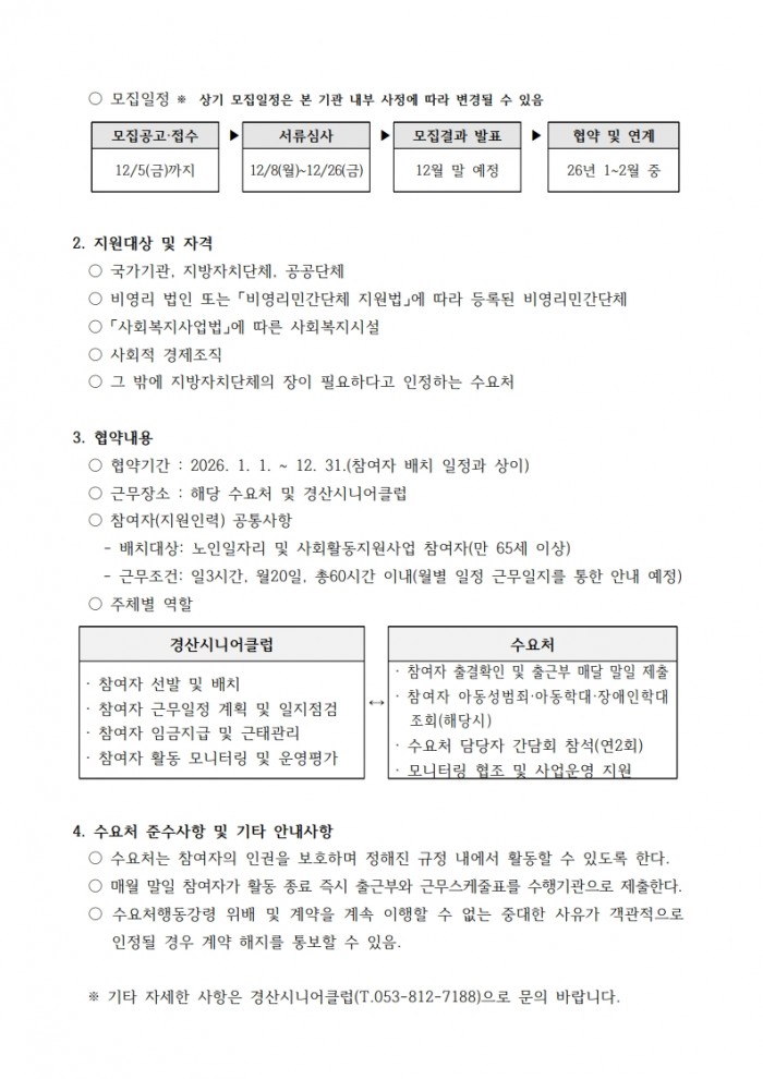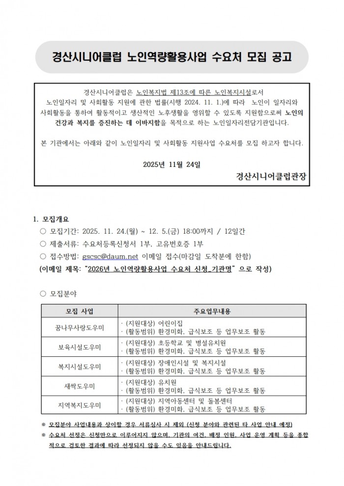 2026년 경산시니어클럽 노인역량활용사업 수요처 모집 공고