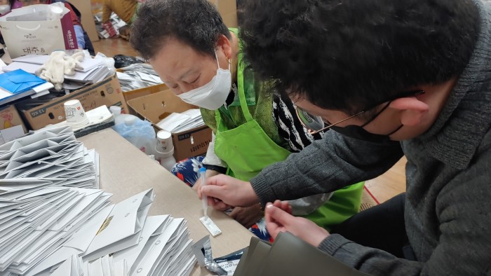 자가진단 키트로 검사를 실시하였습니다.