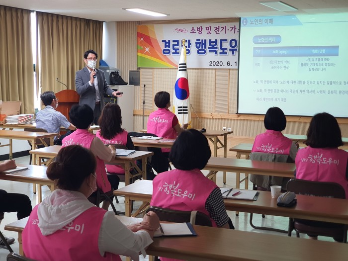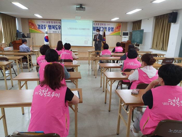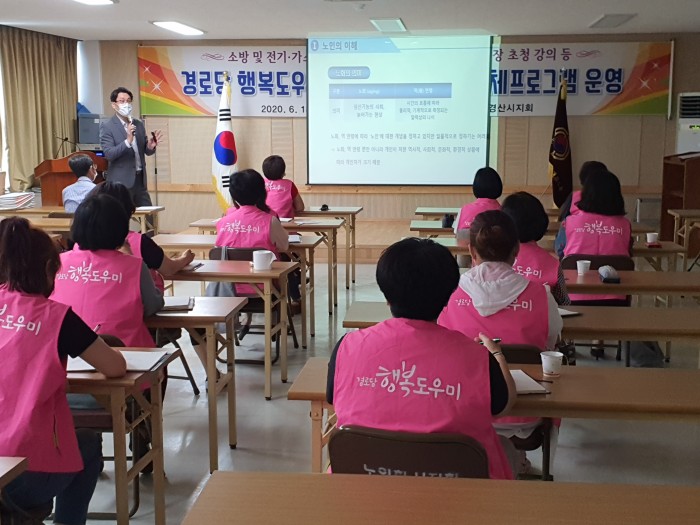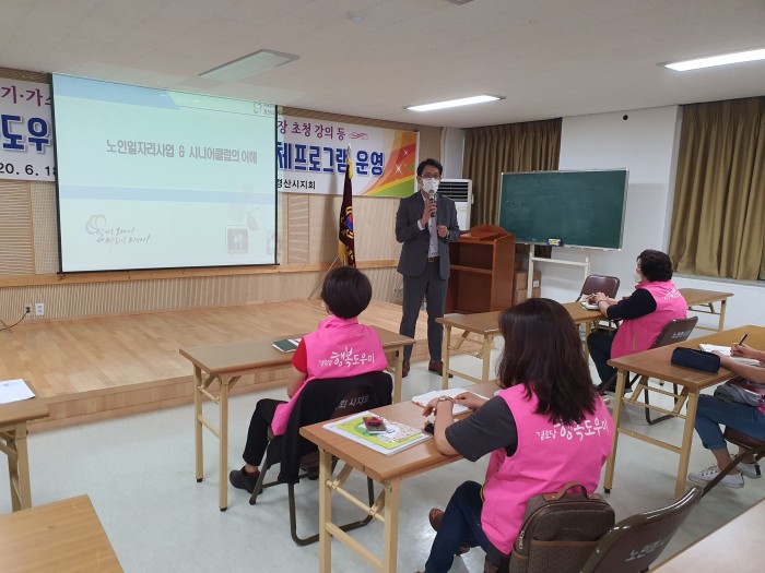 2020. 06. 25 (목요일)대한노인회 경산시지회 경로당 행복도우미 분들에게 노인일자리사업 · 시니어클럽에 대한 설명과 홍보 하는 기회를 가지게 되었습니다.
