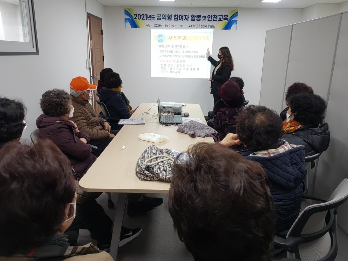2021. 01. 25.(월)부터 2021. 02. 08.(월)까지 노인사회활동지원사업(공익형)활동교육 및 안전교육을 현장과 집합교육으로 진행하였습니다.