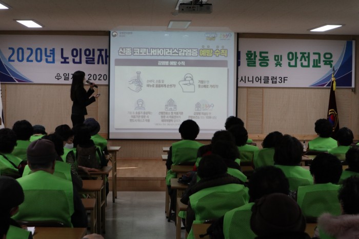 내용 : 2020년도 행복노-노케어 참여자(130명)을 대상으로 활동방법, 안전수칙 등 활동에 필요한 기본교육 및 신종코로나바이러스 예방을 위한 안전교육을 실시하였다.