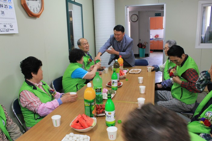 5월 7일 시장형사업단 어르신을 방문하여 카네이션을 달아드렸습니다. 건강하고 즐겁게 일하세요~