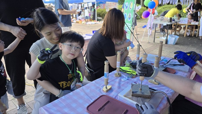 본격적으로 병뚜껑을 녹여서 아이들이 직접 마음에 드는 모양틀을 찍고, 굳힌 후에 키링으로 만들어서 가져감으로써 병뚜껑이 단순히 버려지는 것이 아니라 예쁜 악세사리로 재탄생할 수 있다는 것을 체험할 수 있었던 좋은 기회이기도 했구요^^
