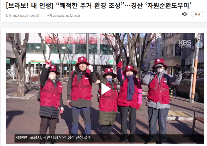 경산시니어클럽 노인공익활동사업 중 하나인 '자원순환도우미'가 KBS에서 방영하는 '브라보! 내 인생'이라는 방송에 출연하게 되었습니다!