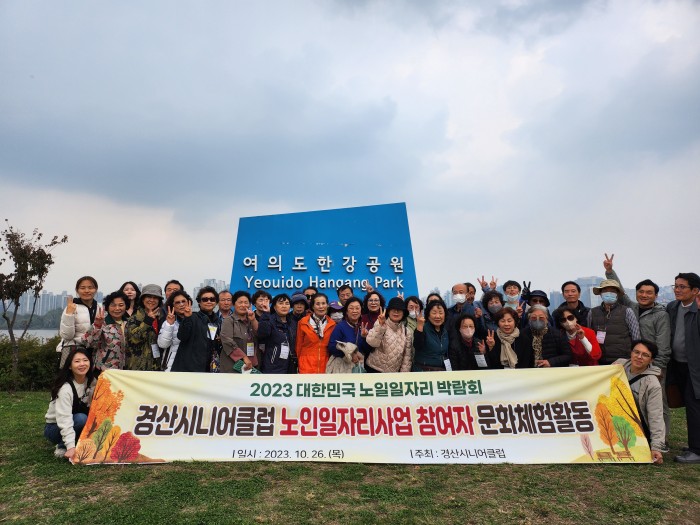 경산시니어클럽은 오늘(10.26.) 서울 여의도 한강공원 물빛무대에서 열린 2023 대한민국 노인일자리 박람회에 일자리참여자 어르신 30명을 모시고 참가했습니다