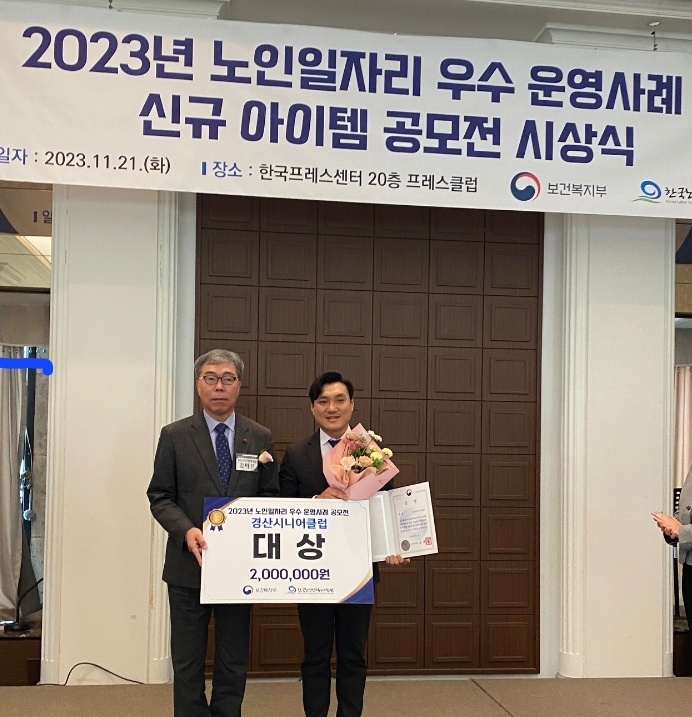 경산시니어클럽이 2023년 노인일자리 우수 운영사례 및 신규 아이템 공모전 시상식에서 대상을 수상하였습니다!