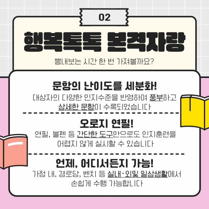 행복노노케어 사업단에서 진행 중인 인지훈련 '시니어 행복톡톡'입니다^^