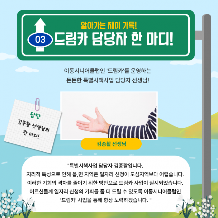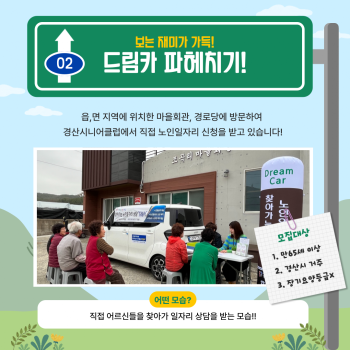 찾아가는 노인일자리! 이동시니어클럽인 드림카 사업입니다! 많은 관심 부탁드립니다!