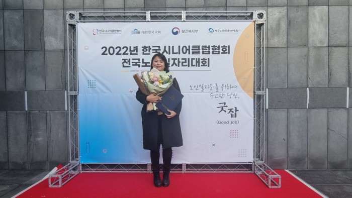 2022년 한국시니어클럽협회 전국노인일자리대회에서 김두호 팀장, 김혜순 선생님께서 한국시니어클럽협회장상, 한국노인인력개발원장상을 수상하였습니다!!!!! 그간의 노고에 격려와 축하를 전합니다^^