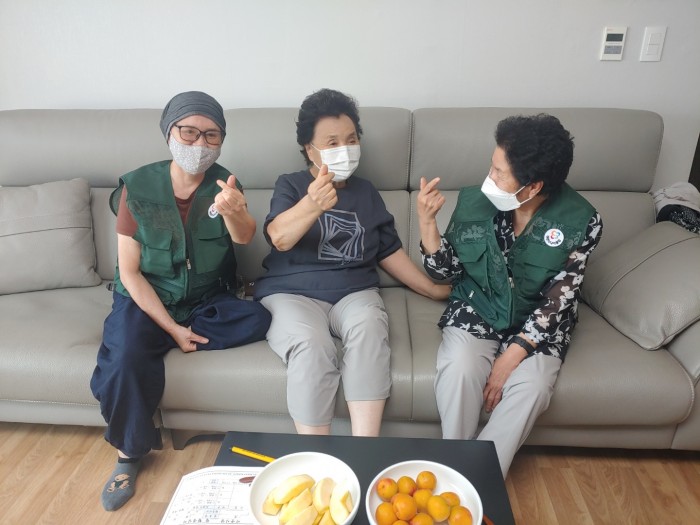 이웃사랑 활동은 외롭고 생활에 소소한 도움이 필요한 수요자댁을 방문하여 정서지원과 간단한 심부름을 해주어 수요자들께 도움을 드리는 활동입니다. 담당자가 활동 점검을 나가 현 사업이 만족스러운지 물어보면 하나같이 "도움이 많이 되지~ 자식들도 잘 못찾아 오는데 자주 들여다 봐 주고 도움을 주니 아주 고맙다"고 하십니다.