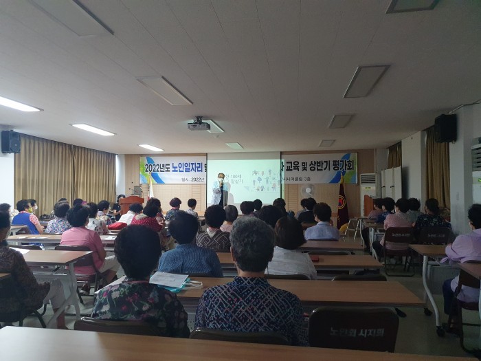 2022년도 노인일자리 공익활동형 사업(이웃사랑 사업단)의 교육 및 상반기 평가회를 7월 25일(월) 실시하였습니다.