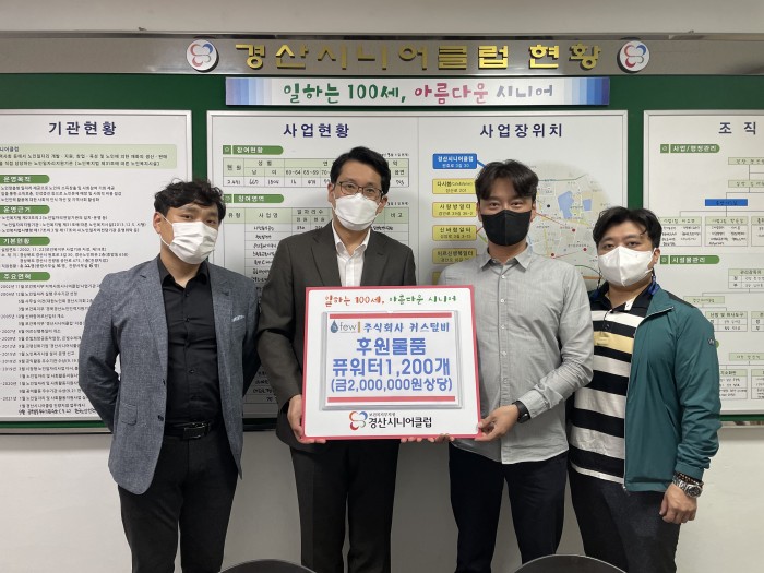 금일 주식회사 커스텀비로부터 퓨워터 생수 1,200팩을 지원받았습니다.