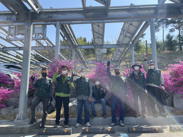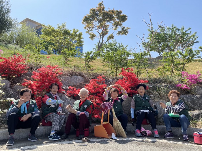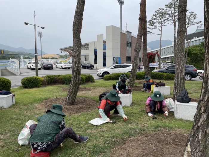 그래서 어르신들이 열정한 가득한 모습으로 풀을 뽑으시며 환경정화를 하고 계십니다