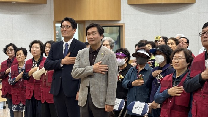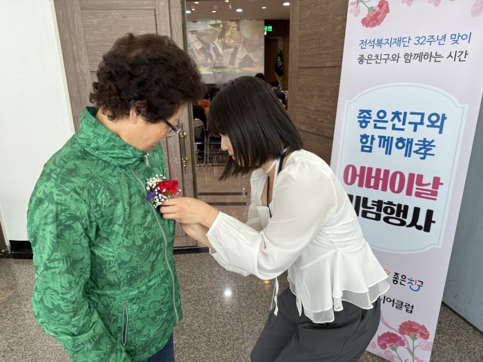행사는 기관장님의 따뜻한 환영 인사로 시작되어, 이어서 경산시장님의 축하 말씀이 전해졌습니다. 이후 대표 어르신 9분께 시장님과 관장님이 직접 카네이션을 달아드리며 감사의 마음을 전했고, 기념사진 촬영을 통해 소중한 순간을 함께 남겼습니다. 또한, 시장님의 노래 공연 2곡이 이어지며 분위기는 한층 더 흥겹고 따뜻해졌습니다.